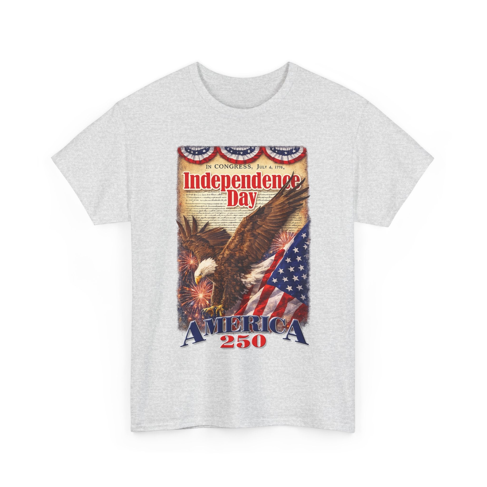 Wear a piece of American pride that feels lived-in from the first wear. This classic cotton tee carries a vintage-style Independence Day graphic: a soaring bald eagle, weathered flag motifs, and bold patriotic lettering that reads like a poster from another era. The print’s muted, antique tones give the shirt a quiet, nostalgic energy—great for backyard barbecues, firework-lit evenings, or casual days when you want to show country pride without shouting. The relaxed crew silhouette layers easily under a denim jacket or stands alone with shorts. It’s an honest, familiar staple that settles into your rotation and keeps the focus on shared summer rituals—neighborhood parades, family get-togethers, and late-night conversations by the grill.