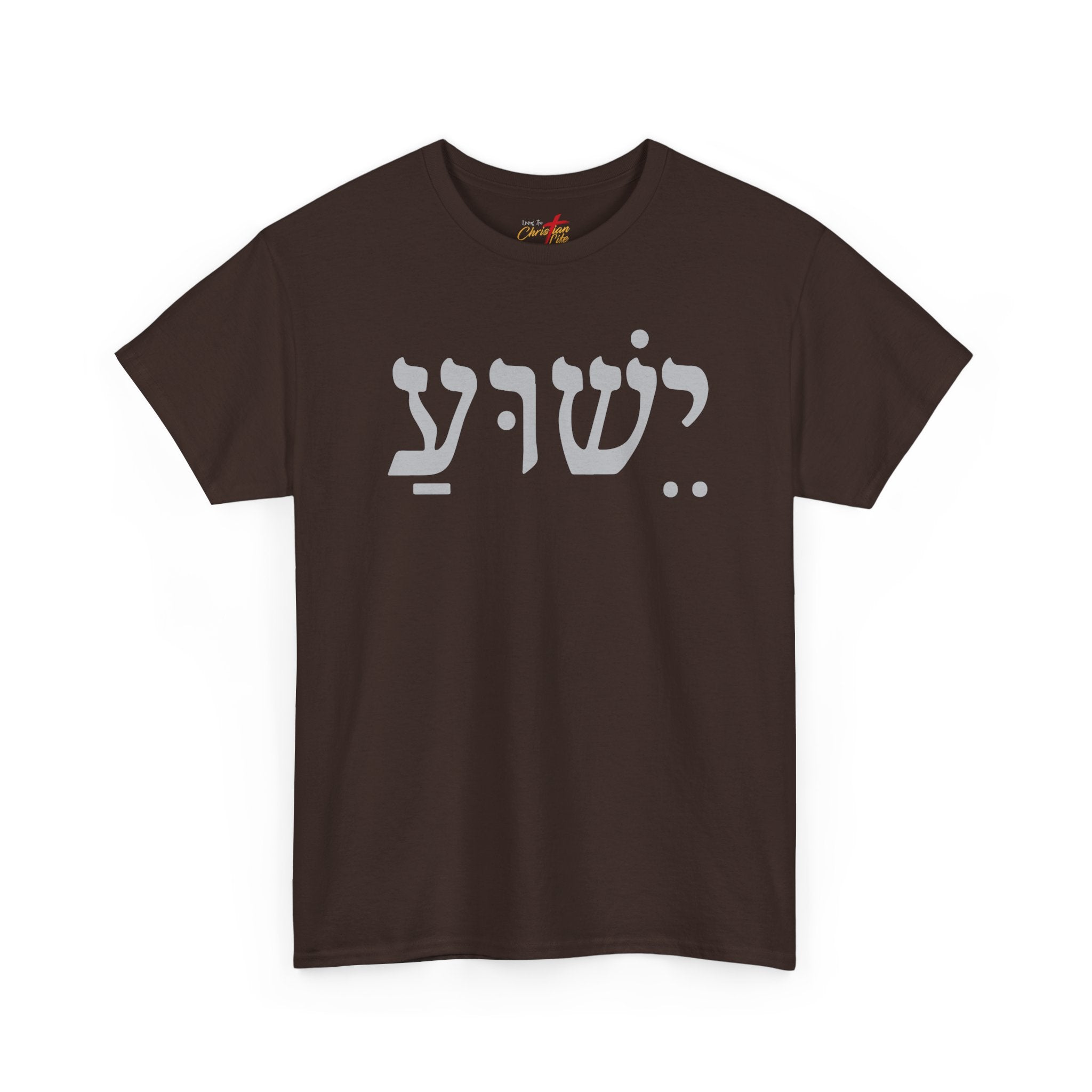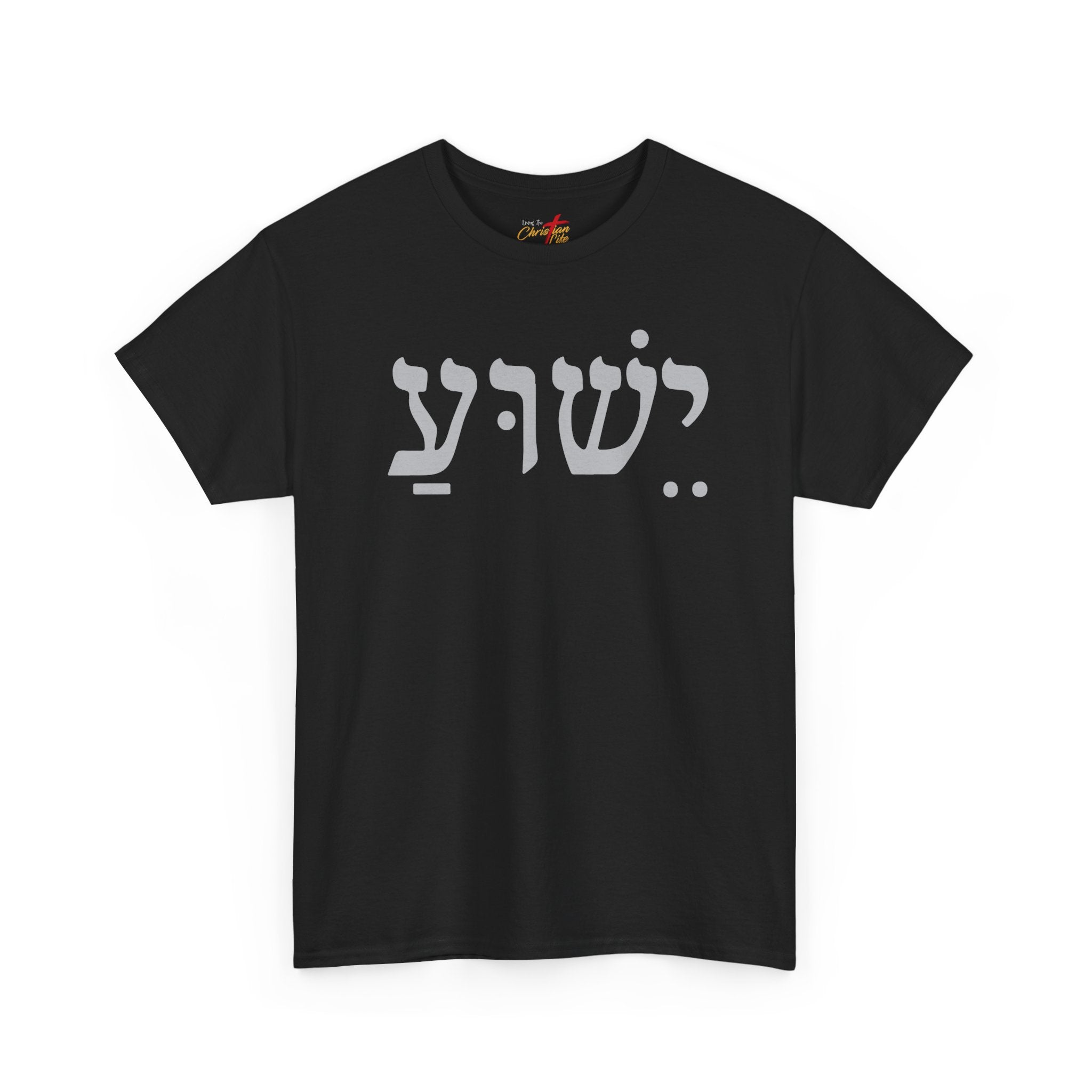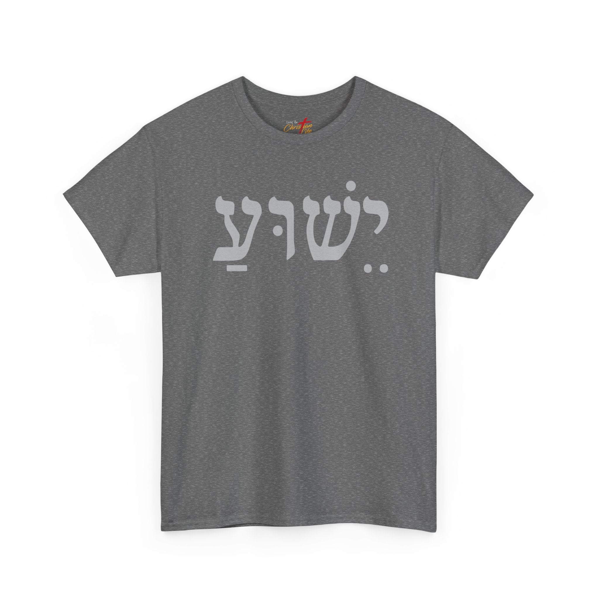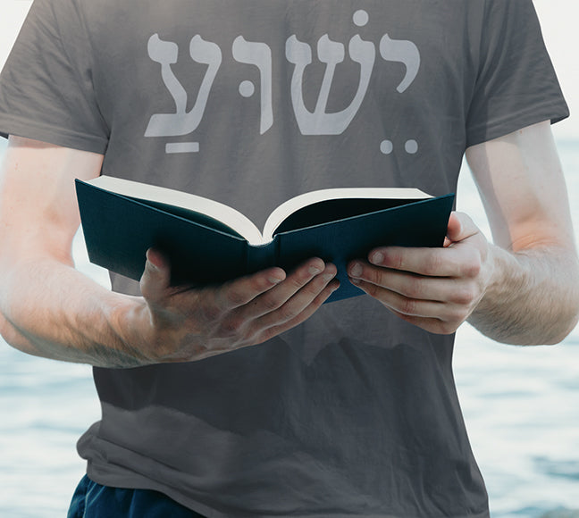 This tee wears like a quiet statement. Soft, mid-weight cotton and a classic crew cut make it an easy layer for everyday rhythm — worn over a long-sleeve in cool weather or alone on warm afternoons. The front features the bold, single-line Hebrew name "Yeshua" which means "Joshua" and "Jesus" in a muted tone that reads like a short, private poem across the chest. It settles naturally into streetwear and spiritual wardrobes alike: pair it with worn denim and boots for a grounded, lived-in look, or tuck it into a skirt and add layered necklaces for a modern devotional vibe. The fit is relaxed without being boxy, so it moves with you through errands, gatherings, worship nights, or quiet mornings of coffee and reading.