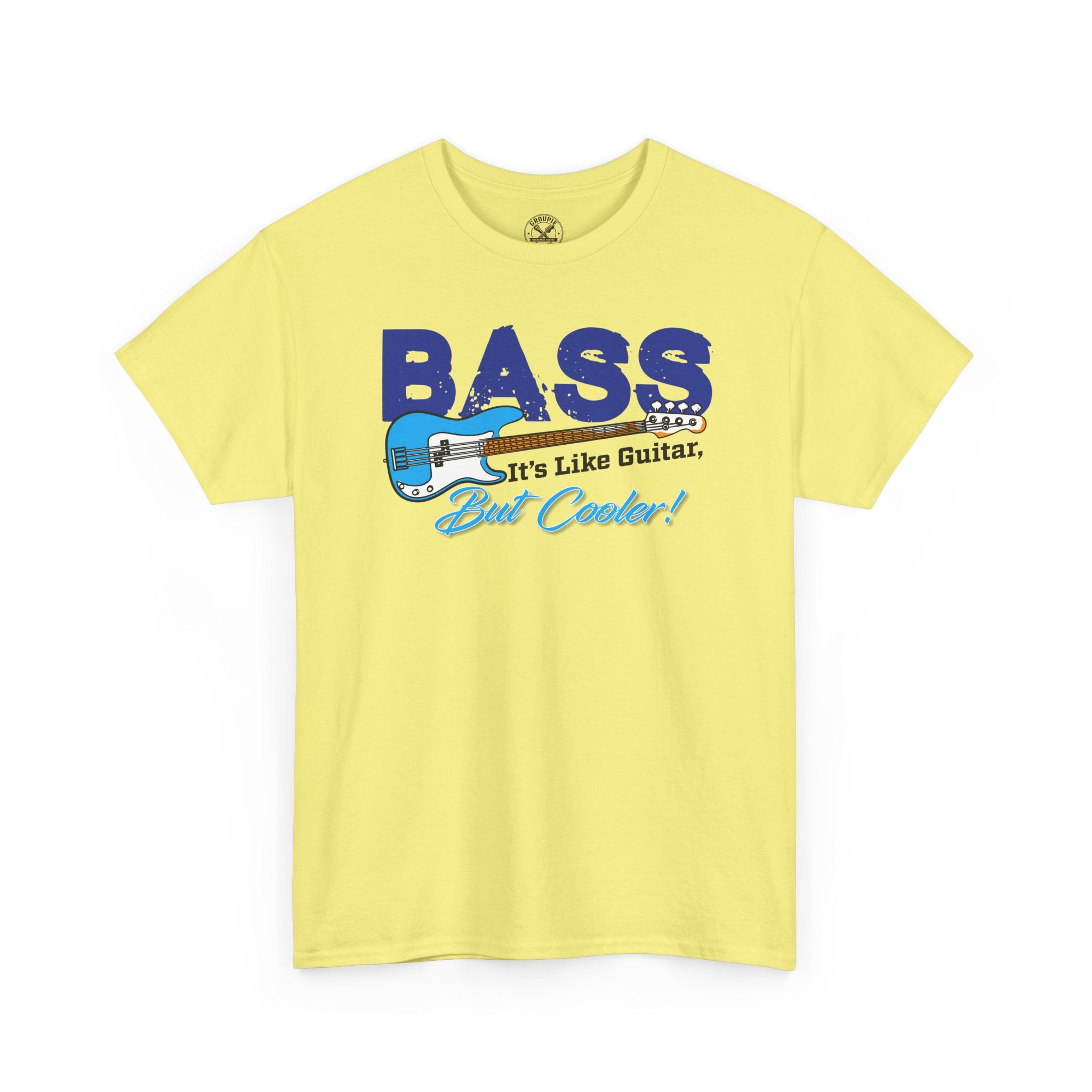 This soft, classic-fit tee celebrates bass players with a playful, music-ready vibe. The bold “BASS” lettering and illustrated bass guitar in cool blues sit centered on a crisp white background, giving the design room to breathe and the artwork to pop. Lightweight yet sturdy 100% cotton keeps the shirt breathable for long rehearsals, gigs, or relaxed weekends. Wear it to band practice, open mic nights, or while cueing tracks at a home studio — it quietly announces your love of low end without shouting. The tear-away label and ribbed collar keep you comfortable; shoulder taping and tubular knit maintain shape through repeated washes. For the bassist who prefers understated stage apparel or casual merch that actually survives the road, this tee blends vintage-inspired graphics with dependable everyday construction.