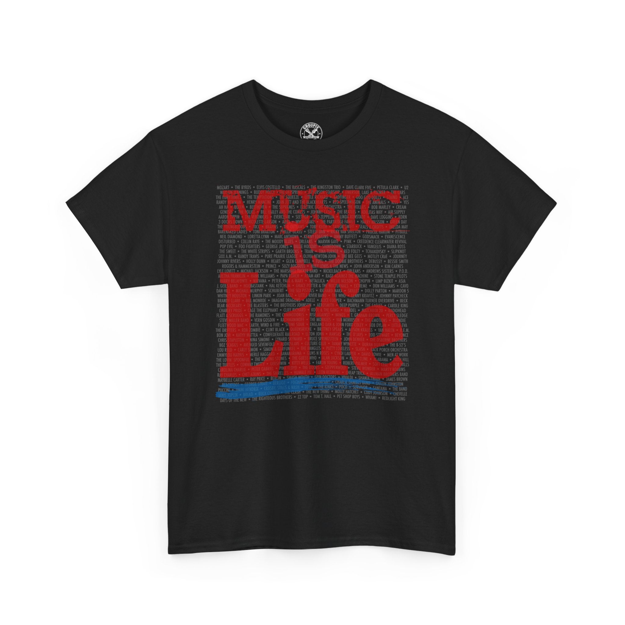 This black classic-fit tee carries a bold, vintage-inspired graphic that reads "Music Is Life" in distressed red and blue over a textured dark block. It feels lived-in from the first wear — soft, sturdy cotton with a roomy cut that sits comfortably whether you’re at a gig, in the studio, or chasing open-road playlists. The ribbed collar and taped shoulders keep the shape after many washes, while the tear-away label means no itch around the neck. Subtle textile flecks on natural shades and high-detail printing methods preserve the artwork’s crisp edges and depth. Wear it as an everyday statement piece that speaks the language of listeners, players, and makers.
